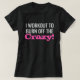 Agora, com mais tamanho, eu trabalho para queimar o louco! Aliviar o estresse na academia queimando calorias e suando! Camisa de citação motivacional rosa e preta