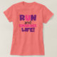 Se você gosta de correr, correr 5Ks, 10Ks, meia maratona, ou maratonas, você vai adorar este design de texto colorido em roxo e rosa que lê Run and Embrace Life! Corra e Abraça camisetas, canecas, bolsas, cartões, autocolantes, correntes-chave, mousépias, capas de iphone, ímãs e muito mais!