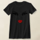 Esta t-shirt feminina apresenta o contorno de um rosto que tem grandes olhos e lábios vermelhos e vermelhos. Design muito legal que certamente será notado.