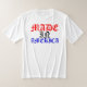 um t-shirt com uma águia branca e azul vermelha agradável com a harmonização feita no slogan de América na parte traseira.