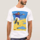 Este t-shirt do divertimento para cães salgados velhos caracteriza um pescador feliz que salta ao longo de uma praia britânica. O design original é baseado em um poster britânico da propaganda do vintage.