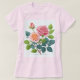 T-shirt com algumas rosas cor-de-rosa e algumas folhas verdes.