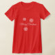 Esta camisa de Natal é mostrada em Vermelho com flocos de neve e Feliz Natal na área do peito. Você pode personalizar esta camisa ou comprar como está.