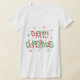 A camiseta de Natal feminina é mostrada em branco com uma impressão de Natal feliz. Personalize esta camisa ou comprar como está.