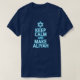 Texto brilhante, azul e branco, lendo "MANTENHA CALMA E FAÇA ALIYAH." Aliyah (ע ל י ה), que significa sotaque, é a palavra hebraica para a imigração da diáspora para Israel. Aliyah é considerada como "subindo" na direção de Jerusalém. O que você está esperando?