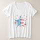 Celebre o Dia da Independência com esta camisa fofinha. Bandeira Americana de Aquarela com impressão de fogos de artifício com Feliz Quarto Saudação nas costas. Personalize sua preferência.