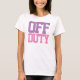 Relaxe em uma t-shirt quando estiver longe do trabalho. Mostre ao mundo que está fora de serviço. De trabalho e de serviço. A mensagem da camisa diz: Off-Duty (Desligado)
