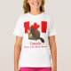 Brincadeira de palavras para esses presentes e roupa. Eles apresentam um castor sentado com a bandeira canadense ao fundo. O texto diz "Canadá.. Casa do Furry Beaver"