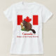 Brincadeira de palavras para esses presentes e roupa. Eles apresentam um castor sentado com a bandeira canadense ao fundo. O texto diz "Canadá.. Casa do Furry Beaver"