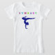 T-Shirt do ginasta - Tem letras coloridas e um ginasta azul real fazendo uma pose de apoio manual.
