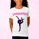 Rosa, faísca e uma ginasta fazendo uma bela pose de chão de ginástica coberta por pequenos speck de brilho falsos.