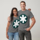 Um símbolo grande de asterisco em branco sobre um fundo colorido. Um design simples e simples em si mesmo ou pode ser mais personalizado. NB: O design também se repete no verso. No entanto, você pode remover qualquer um dos designs, se preferir. Esta camisa é totalmente personalizável.