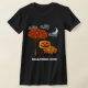 Este tem o Ano ou mude o ano para o termo BOO! Ou qualquer mensagem que você quiser. Fácil camisa de Halloween ou Festa de Colheita para as crianças. Excelente para a festa da igreja! Família de Abóbora Bonita de pé por uma árvore com Folhas de Outono Laranja em uma camiseta. Lua branca e nuvens com uma família de Cabeça de Abóbora de Halloween, sorridente, com a sua mensagem por baixo!