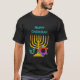 Camiseta elegante, na moda HANUKKAH, projetada com uma falsa menorah dourada, estrela colorida de David e sonho prateado mais GREETING PERSONALIZÁVEL, para que você possa criar sua própria saudação. Ideal para a estação de Hanukkah. Escolha entre uma ampla seção de roupas e presentes de Chanucá, desenhados por Designs Bereanos.