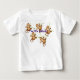 O t-shirt infantil branco caracteriza cinco macacos pequenos significando os cinco macacos pequenos que saltam na rima de berçário da cama.