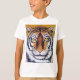 Esta impressão é de uma pintura de óleo original de Lou Pizzi. É simplesmente o rosto de um tigre. Esta camiseta também está disponível para homens, mulheres, bebês e crianças em todos os tamanhos, estilos e cores. Esta imagem está disponível em uma variedade de outros produtos, basta clicar no link abaixo da foto perto de 'Sobre este Design'.