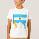Jogo de três jogadores de futebol na frente da bandeira argentina. O nome de país Argentina está no lado