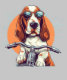 Legal bicicleta de caça-basset dirigindo no pôr do sol, camiseta engraçada legal e fofa de motociclista para crianças e adultos. CAMISETAS ENGRAÇADAS de mulheres e homens da ONU para crianças, meninas e meninos para bebês legal para quem ama cachorros, especialmente cães de basquete. DESIGN de camiseta para de camisas de capuz jaquetas e sacos de tote presente de excelente para qualquer pessoa.Presente Legal para o seu namorada e namorado para o seu presente de excelente recém-nascido para o seu aniversário e aniversário. presente legal para o Natal do Natal e qualquer feriado e celebração