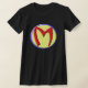 Logotipo para uma super-mãe, círculo amarelo com trim azul e um "M" vermelho grande.