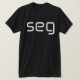 O logotipo do texto SEG no branco em um t-shirt escuro.
