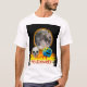 T-shirt Lua cheia, crânio e abóbora azul à noite.