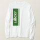 Camiseta básica de manga longa branca com uma imagem da palavra "sortuda" em letras brancas, com uma pedra de champanhe para a letra u, num fundo verde escuro no lado esquerdo, juntamente com duas faixas de pinos verdes. Veja toda a Rua do dia de Patrick em TOUCHES ESPECIAIS | Seção Favoritos para festas.