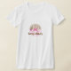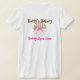T-shirt lunático do divertimento feito em bolinhas e em listras tan, brancas, e cor-de-rosa. Um arco cor-de-rosa doce e uns trabalhos de arte bonitos do grampo de bolos do copo decoram a parte dianteira e a parte traseira deste grande T. Aperfeiçoe para uma loja da padaria, a loja do partido, ou um padeiro feito sob encomenda independente. Personalize os campos do texto para personalizar para o senhor mesmo ou sua loja.