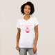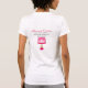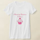 T-shirt à moda da padaria, com gráficos lunáticos de um cupcake cor-de-rosa e verde das bolinhas, no texto feito sob encomenda dianteiro e cor-de-rosa. O texto no preto e o rosa anunciam a informação das padarias, na parte de trás do tshirt, junto com gráficos cor-de-rosa das bolinhas de um bolo. Grande maneira de anunciar seu negócio da padaria. Personalize com seu próprio texto. Produtos de harmonização do negócio disponíveis.