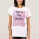 camisa branca com brilho cor-de-rosa que diz a "conversa à faísca"