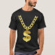 Sinal de dólar maciço do ouro que pendura na corrente, decorada com reflexões e floral.