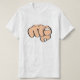 Ilustração de uma mão grande que aponta o dedo no visor em um t-shirt branco
