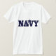 A camiseta masculina é mostrada em branco com texto que lê Marinho. Personalizar este item ou comprar como.