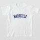 Verifique para fora este t-shirt de Marselha! É você de Marselha, France? Você tem um amigo ou um membro da família que amem Marselha, France? Em caso afirmativo, este t-shirt da "bandeira" é exatamente o presente que você está procurando! As características de design "Marselha" na rotulação arqueada do marinho na pia batismal clássica da faculdade.