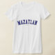 Verifique para fora este t-shirt de Mazatlan! É você de Mazatlan, México? Você tem um amigo ou um membro da família que amem Mazatlan, México? Em caso afirmativo, este t-shirt da "bandeira" é exatamente o presente que você está procurando! As características de design "Mazatlan" na rotulação arqueada do marinho na pia batismal clássica da faculdade.