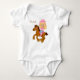 Uma adorável vaquinha loira anda com seu pônei marrom nesta camisa fofa. Ela está vestida de rosa e azul, com botas cor-de-rosa, cachecol, sela e ponte. O nome do seu bebê está escrito em escrita marrom no topo à esquerda. Bonita para sua cowgirl! *Obrigados para o Real Deal Clip Art para o uso do seu trabalho de arte neste design.