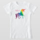 Miúdos da aguarela do unicórnio do arco-íris ou camisa legal personalizada da criança. Escolha dos estilos e dos tamanhos diferentes. Personalize estes divertimento e camisa colorida do unicórnio na pia batismal cor-de-rosa brilhante. Silhueta do unicórnio em um arco-íris de brushstrokes da aguarela de vermelho, de alaranjado, de amarelo, de verde, o azul e o roxo. O fundo branco deixa as cores brilhantes estar para fora belamente. Presente do divertimento para miúdos, adolescentes, e adolescentes que amam unicórnios e criaturas mágicas. Colorido, moderno e à moda. www.SamAnnDesigns.com