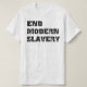 Milhões de homens, de mulheres e de crianças são forçados em todo o mundo a conduzir vidas como escravos. Embora esta exploração não seja chamada frequentemente escravidão, as circunstâncias são as mesmas. As pessoas são vendidas como objetos, forçados para trabalhar para quase nenhum pagamento e são à mercê de seus "empregadores". Faça seu ponto de vista contra a escravidão claro com do "um t-shirt da escravidão moderna fim" e apoie o trabalho para terminar todos os formulários modernos da escravidão.