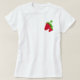 Uma design doce com dois morangos suculentos com polpa vermelha vibrante e caules verdes brilhantes.