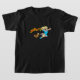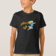 Esta design apresenta uma figura colorida de desenho vestindo um vestido azul acenando uma bandeira com "Happy Hanukkah" nela. Um cachorro marrom a segue enquanto celebra o feriado. Essas camisetas estão disponíveis em estilos, cores e tamanhos variados.