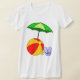 Praia divertida ou piscina de natação arte temática de uma bola vermelha de praia, guarda-chuva verde do sol, sandálias de férias e óleo de bronzeado do sol.
