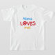 Nana ama-me T-shirts, fatos-chave, vestidos sem dormir, camisas de ralé, vestidos de ralé, chapéus, fatos orgânicos, fatos de futebol, fatos de treino para esporte, T-shirts raglan, T-shirts escuras, camisas de camisola, capuz de pullover, e mais para bebês, crianças e bebês com texto e design cardíaca de vermelho, azul, ouro que lê Nana me ama!
