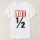 Uma camiseta com um design expressando a expressão inglesa britânica "not half" em palavras e frações.