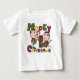 Duas vacas em bonés de meia, presentes do Natal, luzes do feriado, bastões de doces, e texto vermelhos que lê de "o Natal Mooey" em t-shirt do feriado, canecas, cartões, etiquetas, sacolas, pulsos de disparo de parede, caixas da lembrança, ornamento, chaveiro, e outros roupa e presentes bonitos do feriado do tema da vaca.