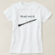 T-shirt amarelo com um clarinete na parte dianteira com texto da "nerd banda"
