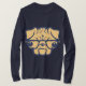 pug Googly-eyed dos desenhos animados com vidros chifre-rimados. Arte retro, da equipe da mascote do estilo, azul & ouro, em t-shirt, hoodies, cartões, presentes. Nerd de Gooooooo!