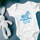 Um belo desenho de um cavalo balançante de cor azul, excelente para um menino, com um nome. Personalizável. Perfeito para um chá de fraldas, como presente.