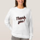 Esta camiseta feminina apresenta um logotipo na moda "Obrigado!" com um gradiente único cor-de-rosa a laranja e um efeito sombra, dando-lhe uma aparência tridimensional. O design é impresso em um tecido confortável e de alta qualidade, fazer perfeito para visto casual. O fundo branco da camiseta melhora as cores vibrantes do logotipo, fazer em destaque.