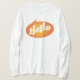 Olá! na parte dianteira e adeus na parte de trás da camisa longa da luva.