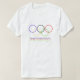A design de Olimpiadas de uma camisa costuma apresentar os cinco anéis de encravamento icônicos, simbolizando a unidade dos cinco continentes habitados. Este emblema é frequentemente acompanhado por gráficos dinâmicos e vibrantes que refletem o espírito do atlantismo, da competição e da camaradagem internacional. A paleta de cores geralmente inclui as cores Olimpiadas — azul, amarelo, preto, verde e vermelho — em relação a um fundo neutro ou ousadamente contrastante, criando um vestuário visualmente fascinante e inspirador.
