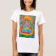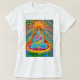 Esta camiseta é impressa com meu trabalho de arte de processo intuitivo original. É uma figura meditativa de tartaruga brilhante segurando seu coração (amor) e seu sol interior (poder) em seus braços. Ela se senta em uma roda de ouro em cima da terra e irradia a luz do ouro de sua coroa. Minha inspiração inicial era a cor turquesa brilhante de uma camiseta que eu havia comprado de outro criador de camisetas.